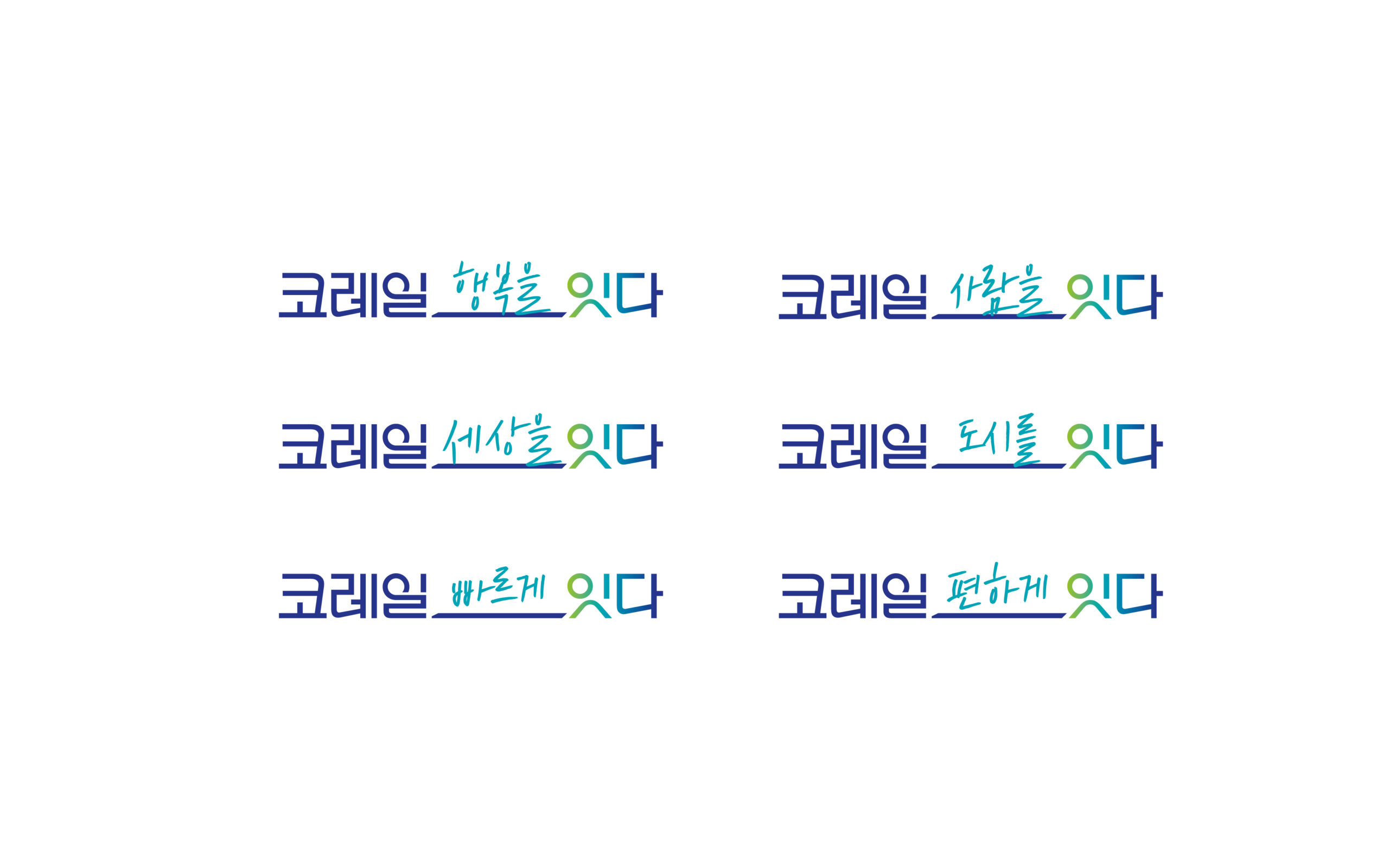 ‘_’(언더바)는 코레일의 핵심 상징 이미지로, 끊임없이 이어지는 철도 선로이자 무한한 연결 가능성의 여백을 의미합니다. 이 여백은 국민이 바라는 가치(‘세상을’, ‘추억을’, ‘만남을’ 등)를 자유롭게 채워 넣을 수 있도록 한 참여형 상징으로 설계되었습니다.